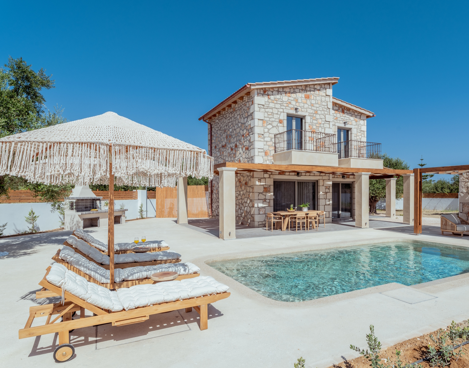 Escape the hustle and bustle and retreat to Bedrock Villa, your haven nestled amidst olive trees in the picturesque Vasilikos, Zakynthos. Just a stone’s throw away from the azure sea, this brand-new villa is designed to pamper up to five guests with its inviting spaces and luxe amenities. Dive into the shimmering pool, fire up the BBQ for alfresco dining, or simply unwind in the modern comforts of this serene sanctuary.