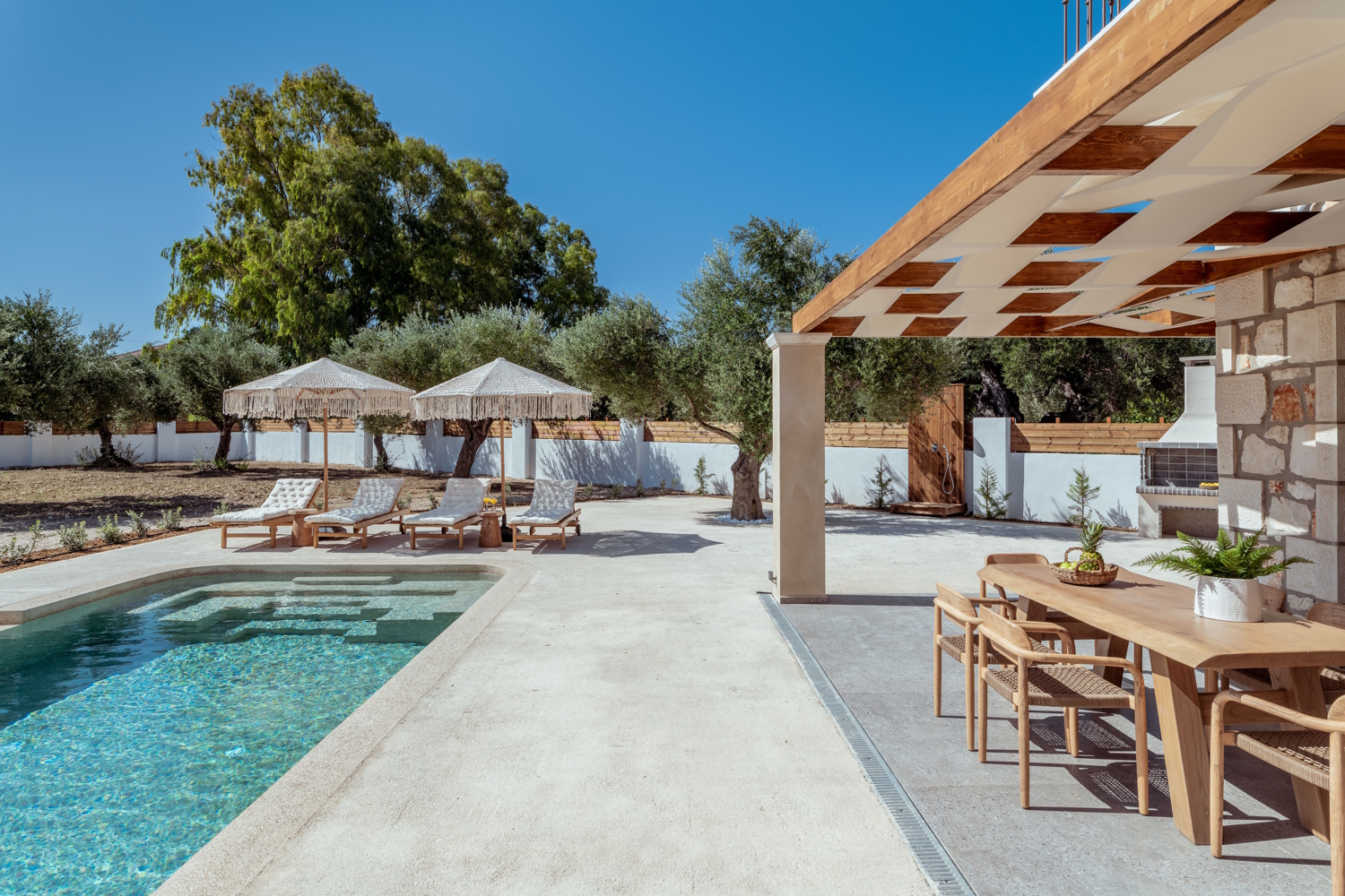 Each image captures the essence, design, and spirit of our villa, offering guests a vivid preview of their upcoming stay. From the sun-kissed pool area and luxurious interiors to the picturesque surroundings of Vasilikos, our gallery is a testament to the blend of nature, comfort, and architecture that Bedrock Villa prides itself on. Scroll through and let the images transport you to a world of relaxation and Grecian charm.